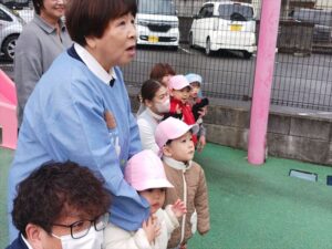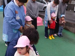 ć€ȘéŒ“ăźéŸłă‚’èžă„ăŠă€ćœ’ćș­ă«ć‡șăŸć­ă©ă‚‚ăŸăĄ