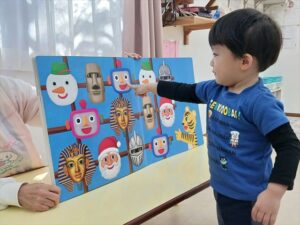 みんなはどんなお面がいいか選んでもらうと自分の好きなものを「これ!」指差しして教えてくれました😄