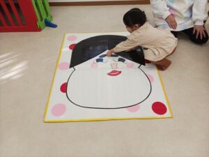 最後は福笑い😚目や鼻をしっかり見て置いたり目隠しで挑戦したり出来上がった顔を見て大笑いの子どもたち大盛り上がりでした🎉